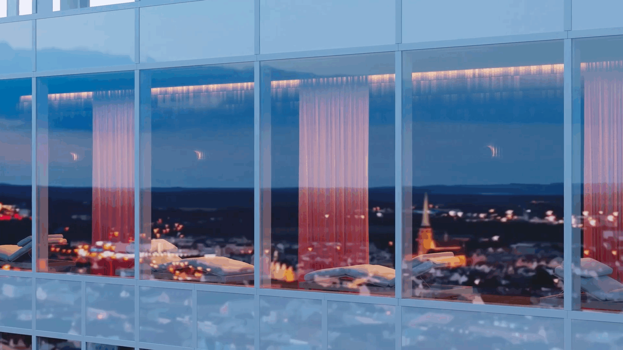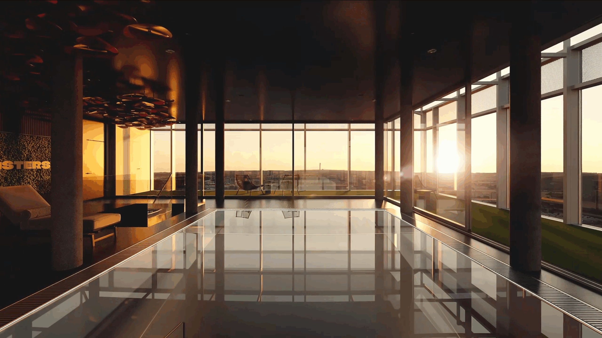 Lobby kombinuje beton, terrazzo a tmavě mořené dřevo s mramorem, zatímco klubové patro s wellness a bazénem je laděno do černé, aby vynikly výhledy na město. Součástí interiérů je také panoramatický „kinosál“. Celý prostor sjednocují červené akcenty, které dodávají energii a styl. Každý byt i společný prostor tak působí luxusně, moderně a opravdu výjimečně.