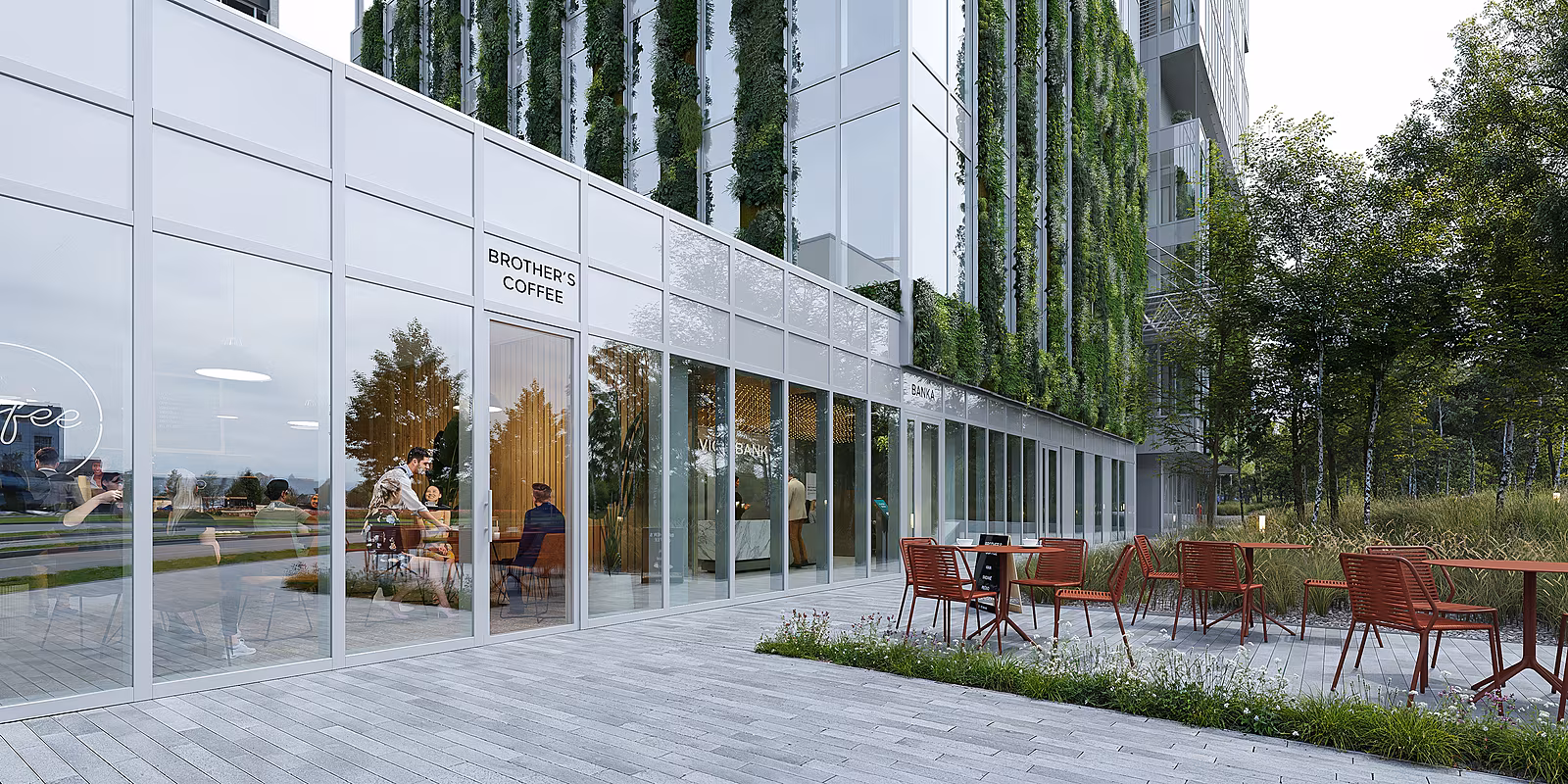 Luxus může být udržitelný a v dokonalém souladu s přírodou – a právě u SISTERS to každý prvek projektu potvrzuje. Nízkoemisní zasklení a centrální rekuperace vzduchu zajišťují svěží a komfortní vnitřní klima, zatímco dešťová voda je zachytávána a využita pro závlahu a splachování. Podlahové vytápění a napojení na centrální zdroj tepla přinášejí pohodlí každý den a fotovoltaické panely na střechách dodávají energii udržitelně a efektivně. Budovy budou mít zelené střechy a částečně i zelené fasády, které propouštějí ideální množství denního světla, přirozeně ochlazují interiér, zlepšují mikroklima a vytvářejí nové biotopy.