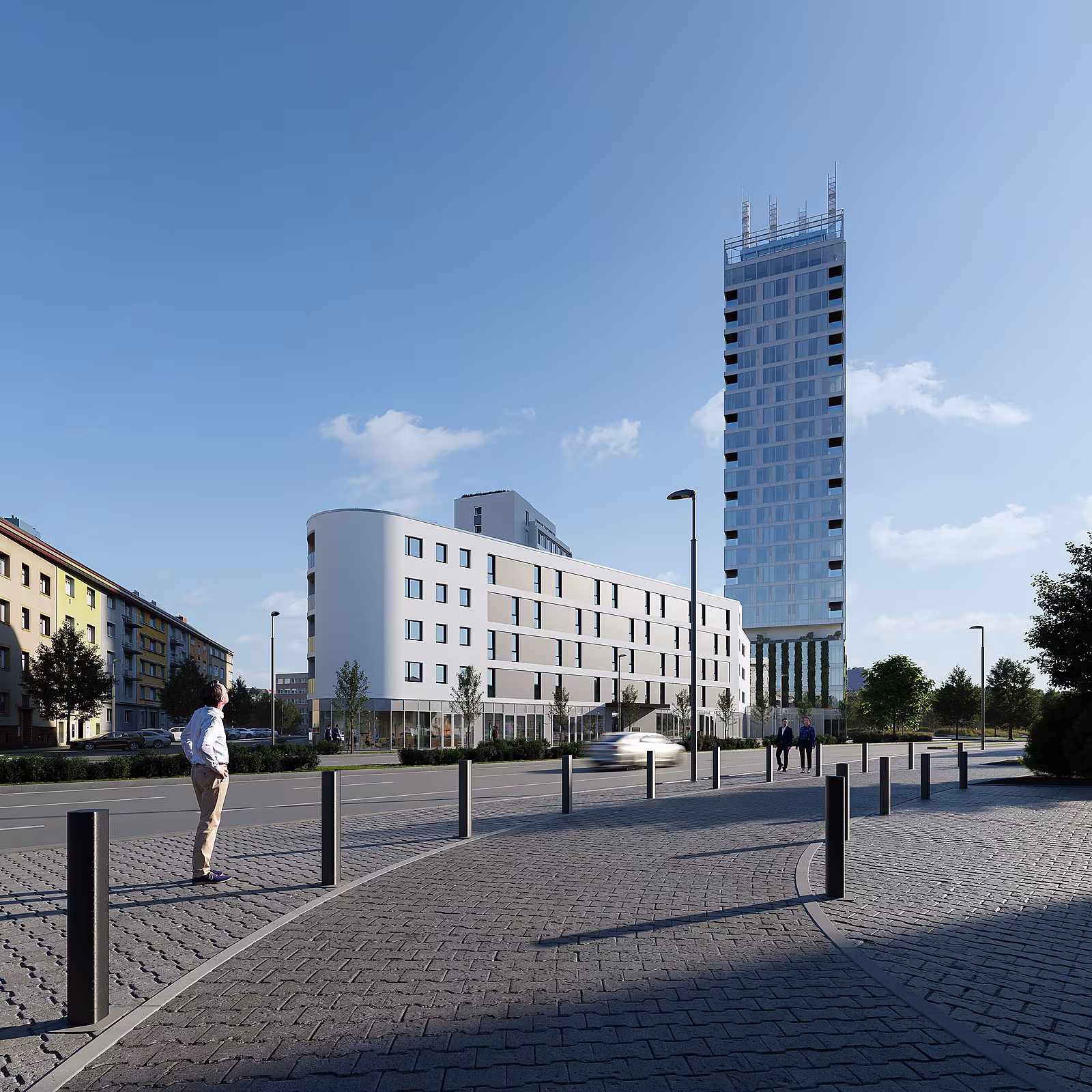 Na náměstí Českých bratří, přímo vedle ikonického Hotelu Škoda, vzniká moderní rezidenční projekt, který promění panorama města Plzeň a stane se jeho novou ikonou. Dvě elegantní věže vysoké 94 a 83 metrů, jejichž tvar evokuje objetí sester, jsou propojeny proskleným krčkem, jenž vytváří ohromující vizuální efekt a nabízí panoramatické výhledy, které berou dech.