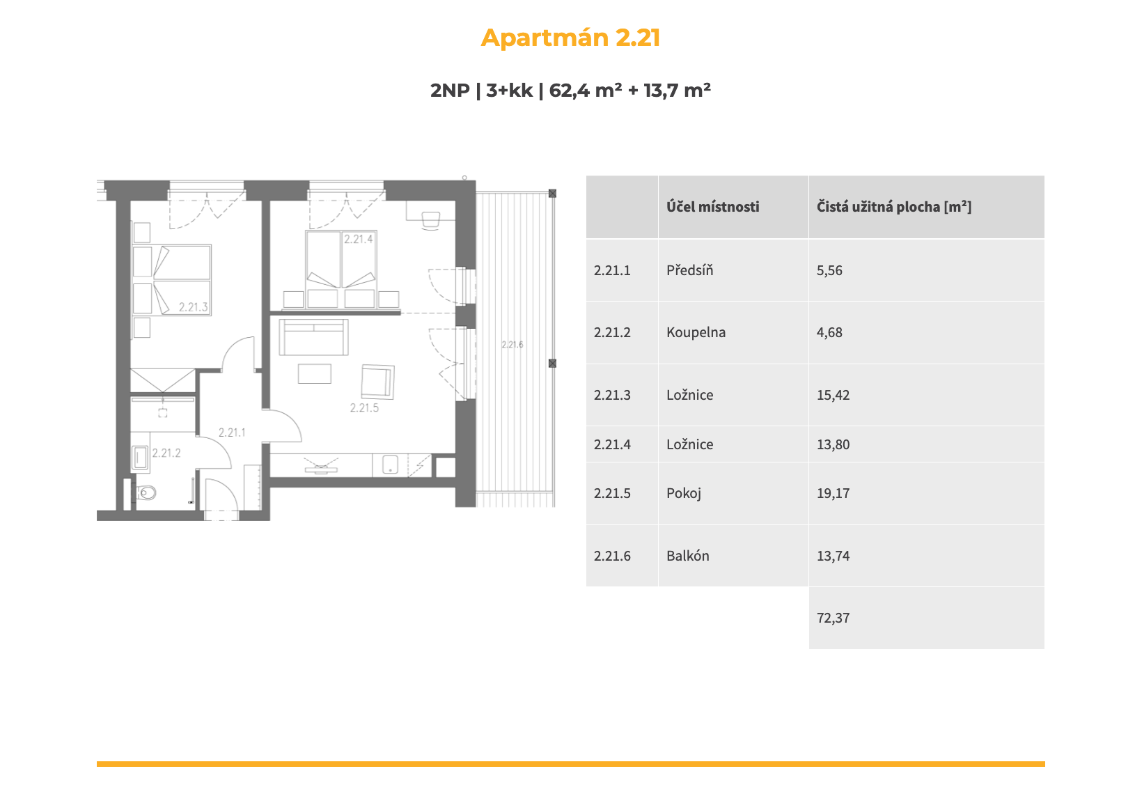 📐 Dispozice: 3+kk | 62 m² + 13 m² terasa